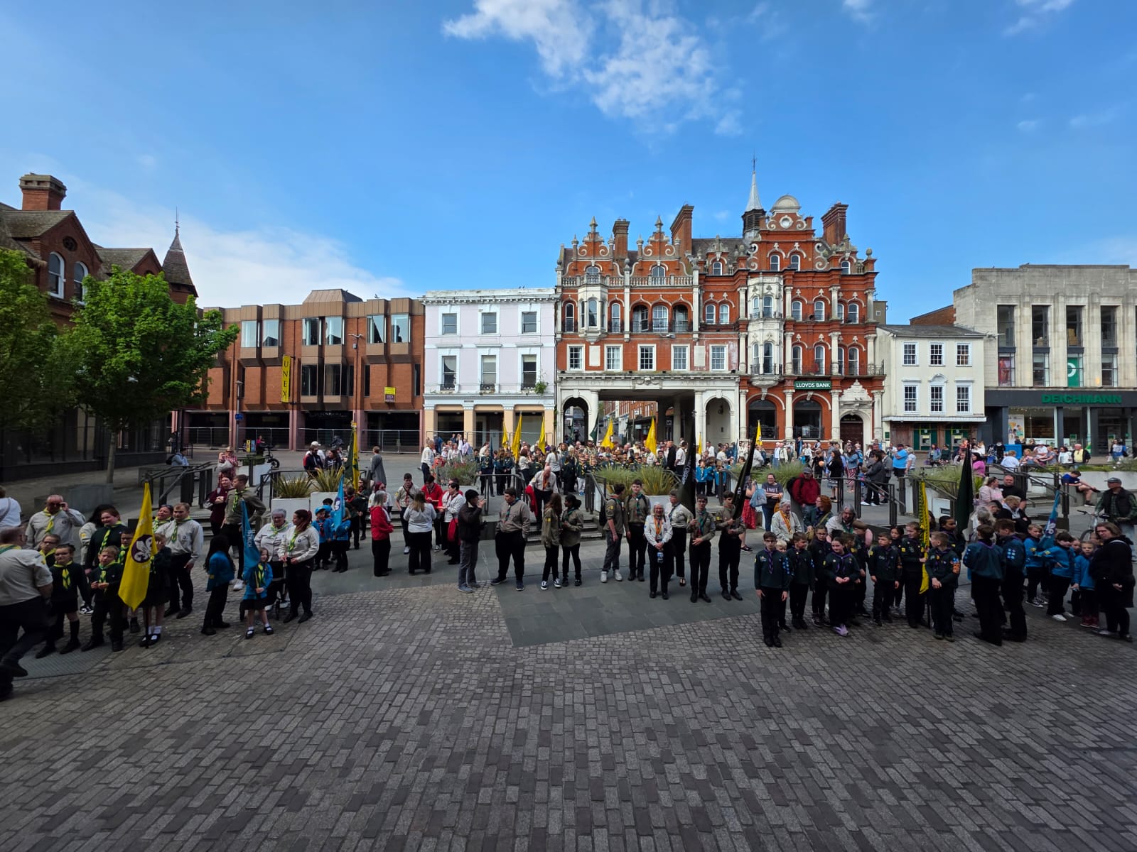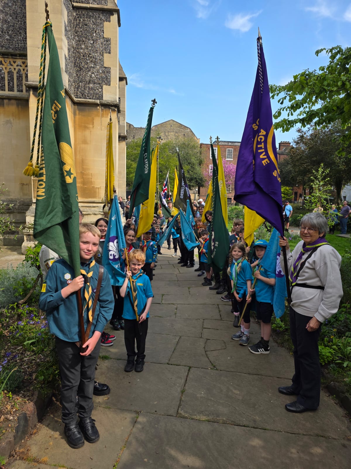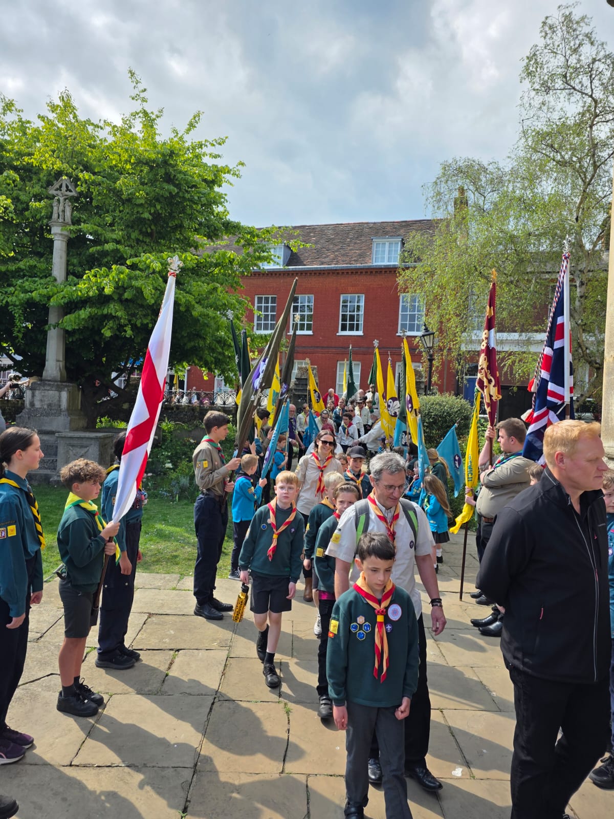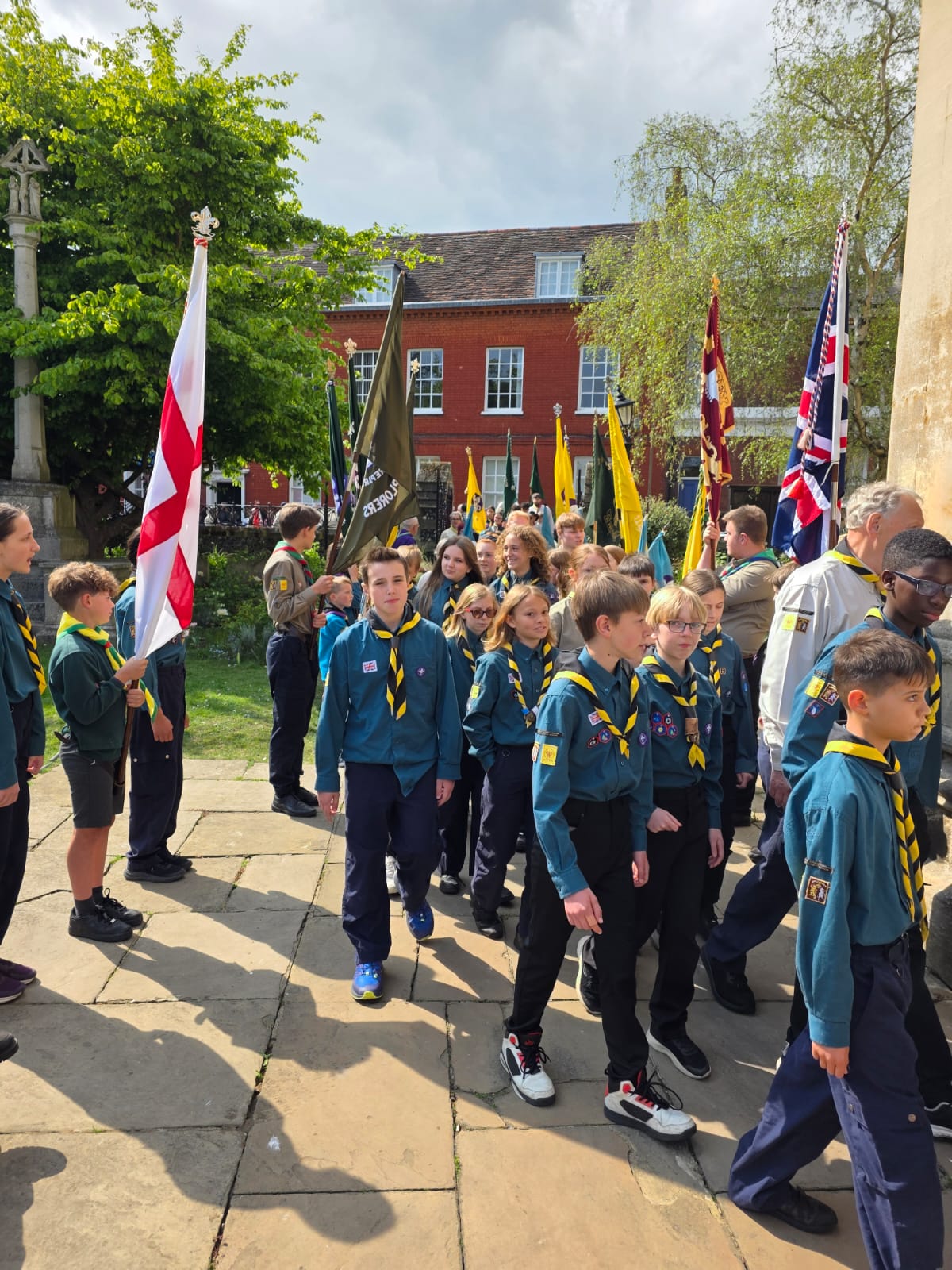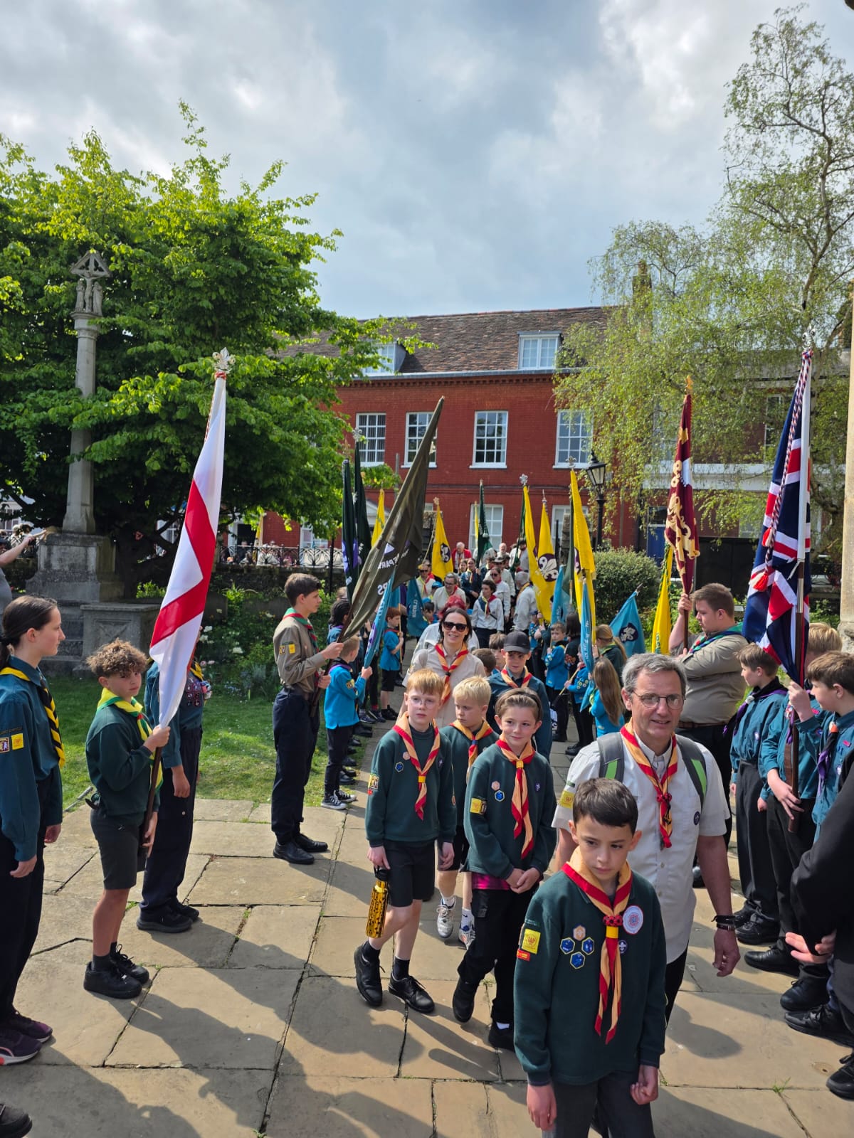 Wolsey District Scouts, joined by the Ipswich Mayor celebrated St Georges Day on Sunday 27th April by walking through the town from the Cornhill to the newly named Ipswich Minister, which was St Mary Le Tower in the heart of the Town. Squirrels, Beavers, Cubs, Scouts and Explorers all took part in the St Georges Day Service.